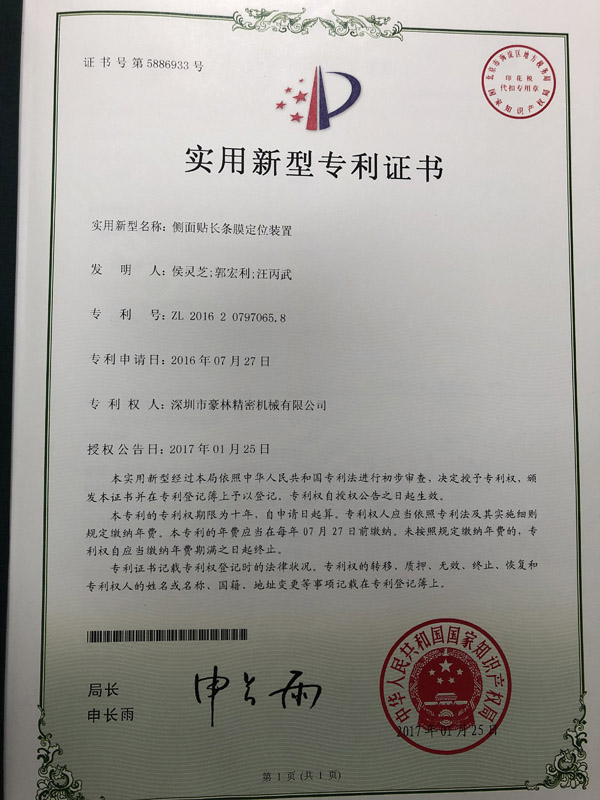 側(cè)面貼長(zhǎng)條膜定位裝置
